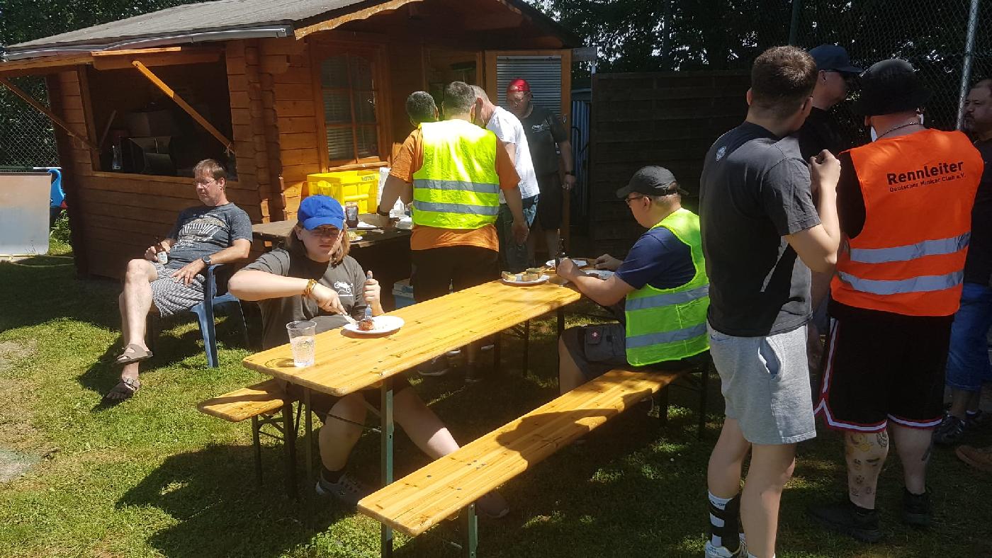 Nach den insgesamt 9 Läufen wurde dann zünftig zu Mittag gegessen. Es gab leckeres Vom Grill Beilagen und kalte Drinks für die aufgeheizte Meute.
